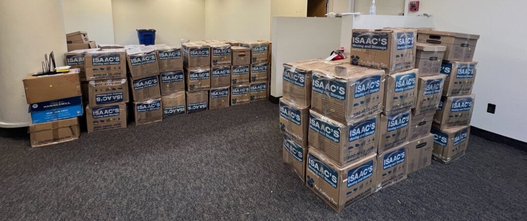 Some of the 142 boxes of Tibetans books from BDRC's office donated in October to a lama for his community library