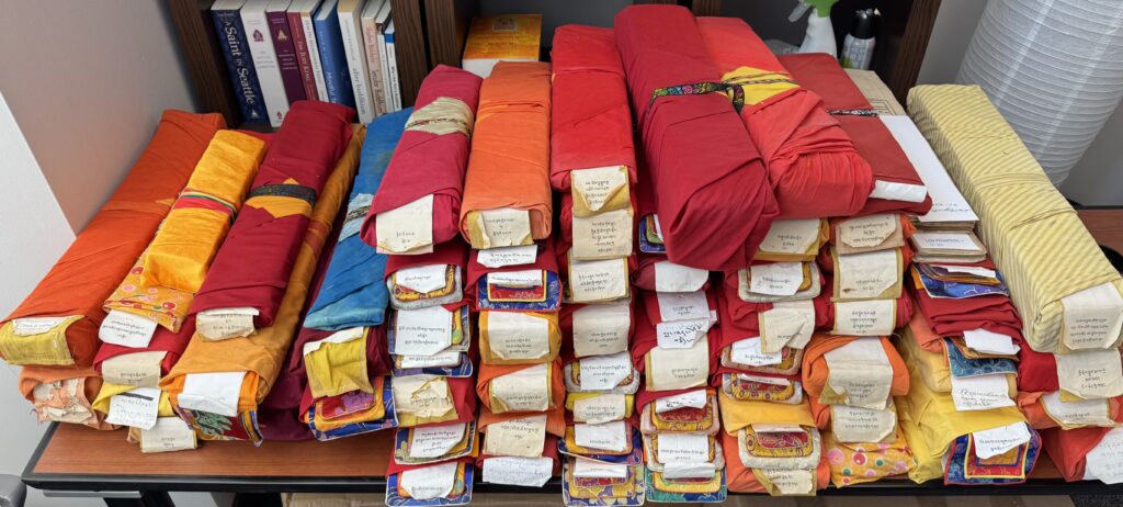 A couple dozen of the last remaining traditional Tibetan texts from Gene's personal collection that were given to Alak Zenkar Rinpoche in 2025 in fulfillment of Gene's will and testament